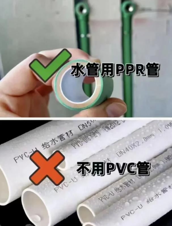水管别用PVC管,时间一长容易脆裂漏水。正确做法:用大牌PPR管,耐高温、耐用几十年,推荐 伟星、日丰。