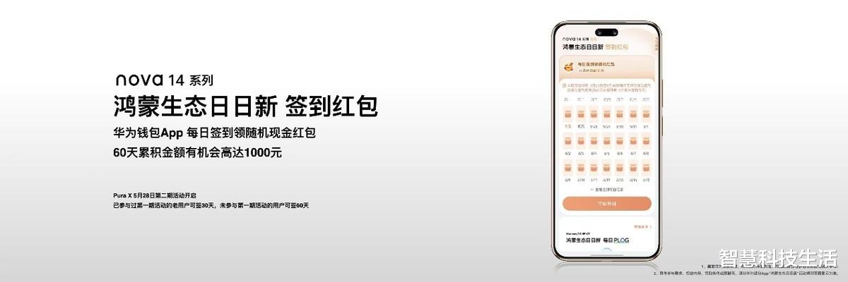这些创新功能,真的让我对nova 14手机爱不释手了!最后再提示一下大家,已入手华为nova 14系列新机的朋友还能领取专享福利!手机桌面右滑前往负一屏,找到“鸿蒙有礼”,即可领取价值800元的权益礼包;而且从5月23号开始,还能参与华为钱包签到领随机红包活动,最多可领60天,大家在体验鸿蒙5创新功能的同时,不要忘记领取福利!