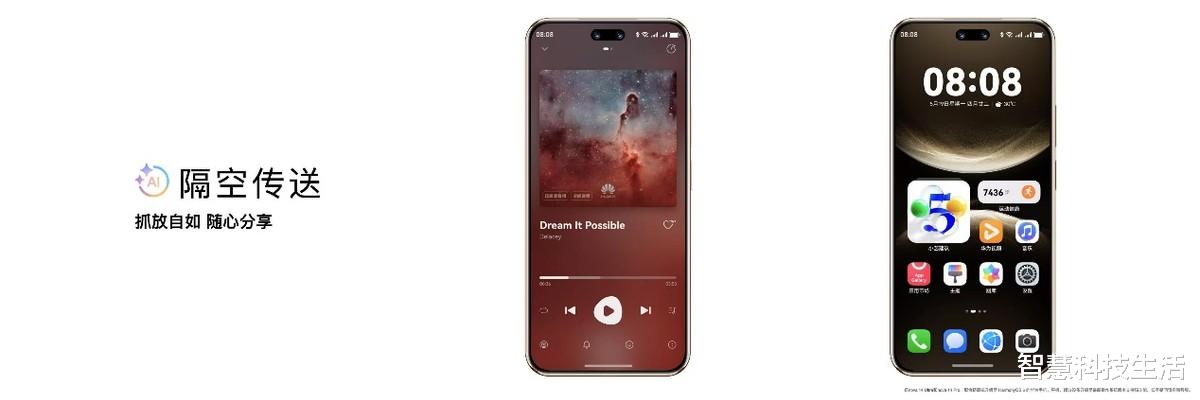 隔空传送功能更是让交互变得更有趣了。在华为音乐听到好听的歌曲时,只要对着屏幕做“抓取”动作,再移动到朋友的手机前,张开手掌做“释放”动作,就能轻松实现音乐的分享,科技感拉满!
