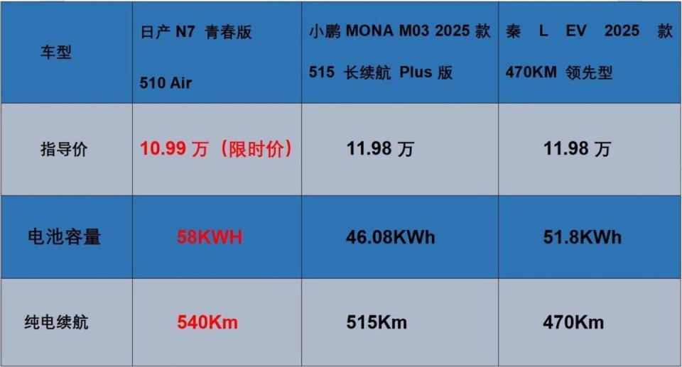 步入2026年,国内10-15万纯电家轿市场彻底进入“白热化”阶段,消费者购车不再只看续航和价格,空间实用性、用车可靠性、电池安全等等维度同样成为核心考量,而综合目前众多车型的市场表现来看,东风旗下的日产N7、小鹏MONA M03、比亚迪秦L EV成为了该价位的顶流爆款。