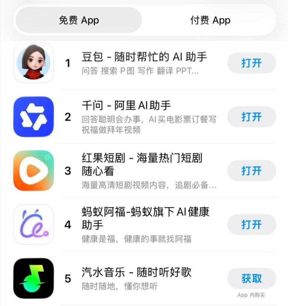 此外,腾讯发布的元宝“分10亿现金”活动报告显示,元宝春节主会场累计抽奖次数超36亿次,用户通过「创作」栏完成AI任务超10亿次。据悉,元宝21天内已迭代更新159项功能。而随着“分10亿现金”活动的收官,腾讯元宝的下载量也出现了明显回落,有网友感慨:“鹅厂真的老了吗?”不过当前榜单排名已经易主,豆包位居第一,千问位居第二。