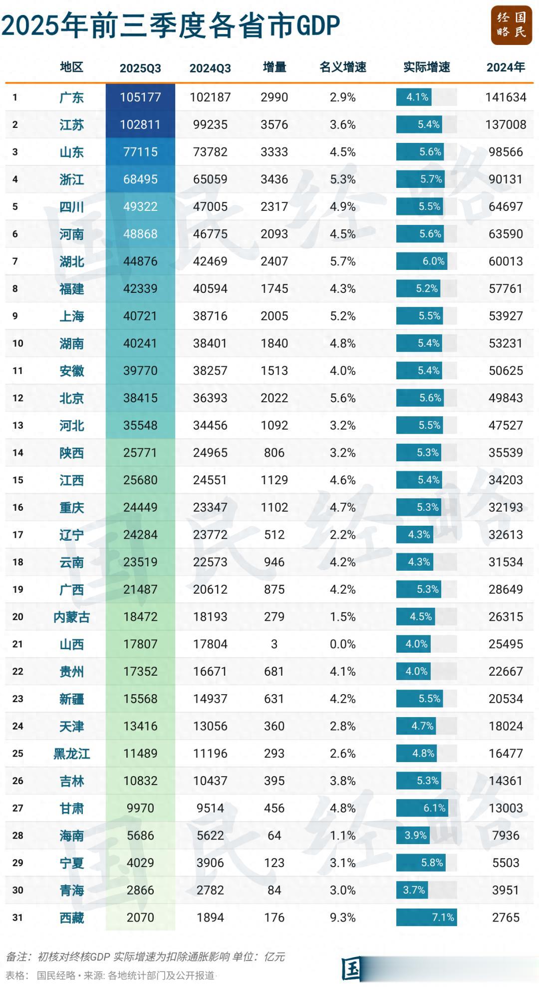 在复杂严峻的国内外经济形势下,湖南经济再次交出了一份亮眼的成绩单。最新数据显示,2025年前三季度,湖南省地区生产总值(GDP)达到40241亿元,成功突破4万亿元大关,在全国各省区市中稳居第十位。与2024年同期38401亿元的总量相比,增量高达1840亿元,按不变价格计算,实际增速达到了5.4%。