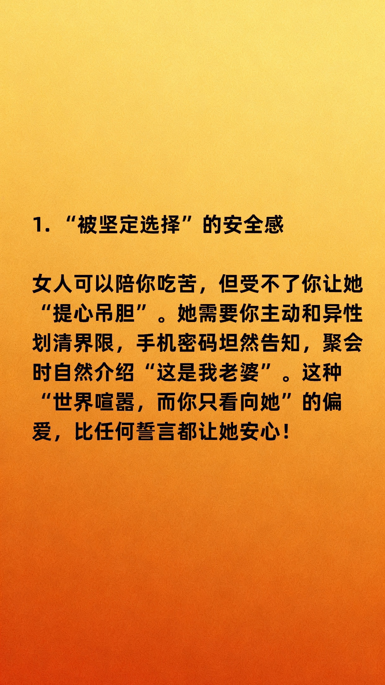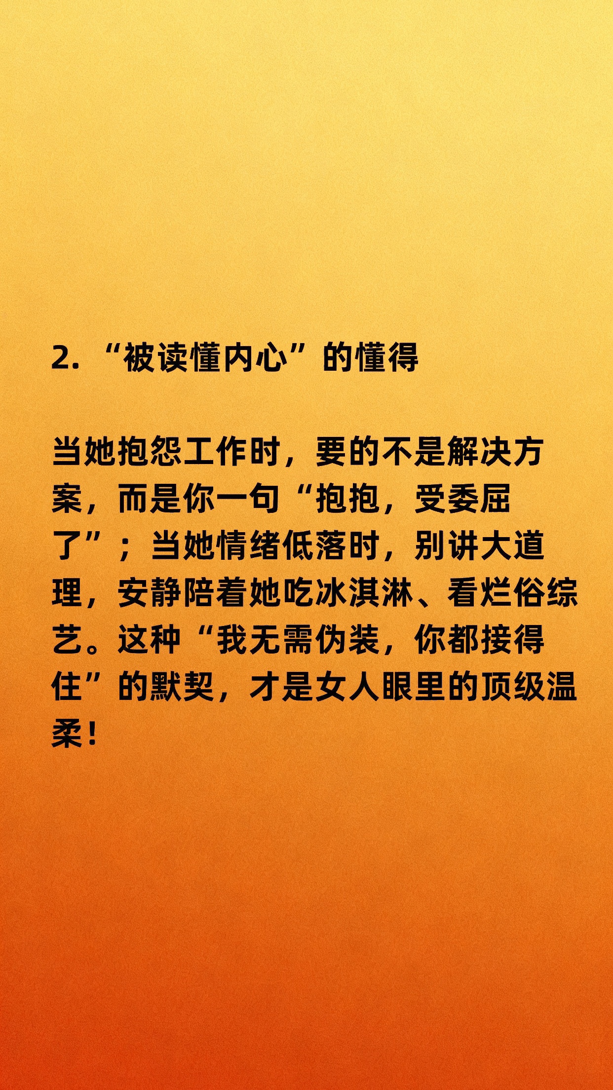 真正的爱,从来不是物质的堆砌,而是用心填满她内心的“情感饥渴”。她渴望的,是被坚定选择的安全感,是脆弱时能被你温柔接住的理解,是日常琐碎里被看见、被珍视的在乎,更是把你写进未来的那份独一无二的归属感。男人,当你读懂并满足了她这些深藏心底的渴望,你给她的就不是一时心动,而是一辈子的心安与追随。爱是动词,行动才是最动听的情话。