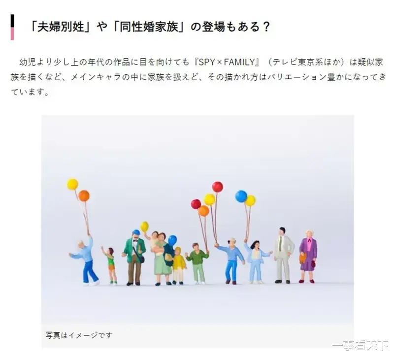 日本週刊杂志《週刊SPA!》在文章开头便指出,现在的儿童向动画中,主角的父母与其他家人不再像从前那样频繁出现在剧情里。这一变化不仅反应了“时下社会形态的转变” ,也有意无意地为特殊家庭背景的孩子创造出更包容的观看体验。