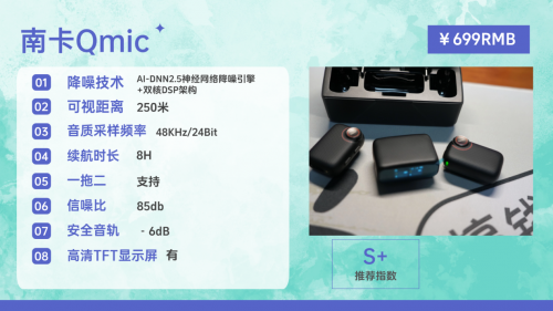 Nank南卡作为领夹麦克风TOP头部品牌,凭借15余年的声学技术积累,掌握多项收音与降噪核心专利,Qmic还拥有12项关键性能指标领先行业对手。从数据层面看,其专业性已是行业天花板级的存在。为了追求极致音质,南卡更是斥资打造国内罕见的高标准声学金耳朵实验室,对人声进行全链路调试与建模。QMic这款产品历经600余天精雕细琢,无论是在收音稳定性、音质纯净度,还是复杂环境下的适配性,均表现出行业唯一的旗舰级水准,被公认为当前领夹麦克风的天花板之作。