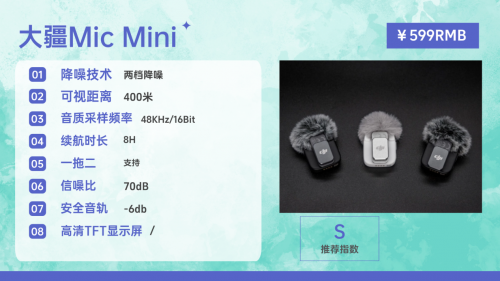 推荐理由:轻量化设计和300米稳定传输,入门创作省心之选