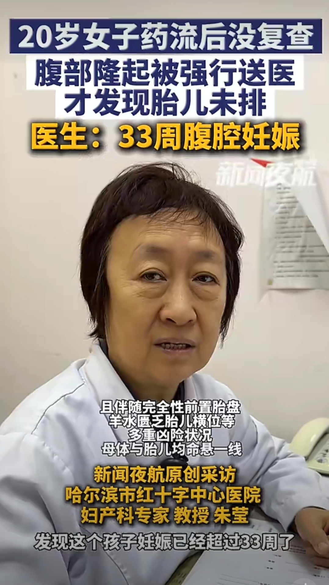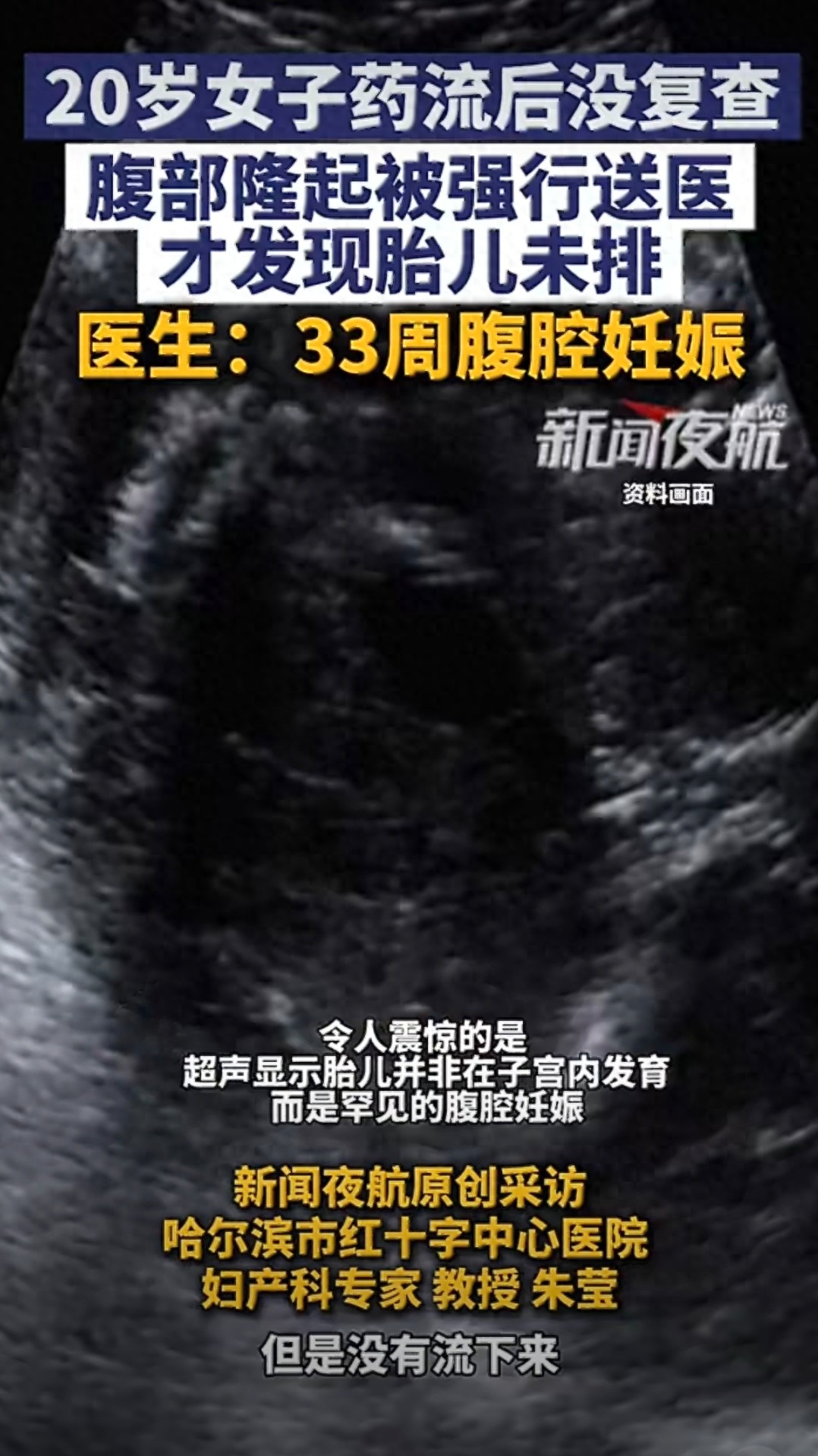 2026年1月15日,黑龙江哈尔滨一名20岁女子因自行服药流产未复查,直到腹部明显隆起被家人强行送医,才发现腹中胎儿不仅未排出,且为极为罕见的“腹腔妊娠”,已孕33周。一场本可致命的医疗危机,在医生紧急手术下化险为夷,最终母女平安。