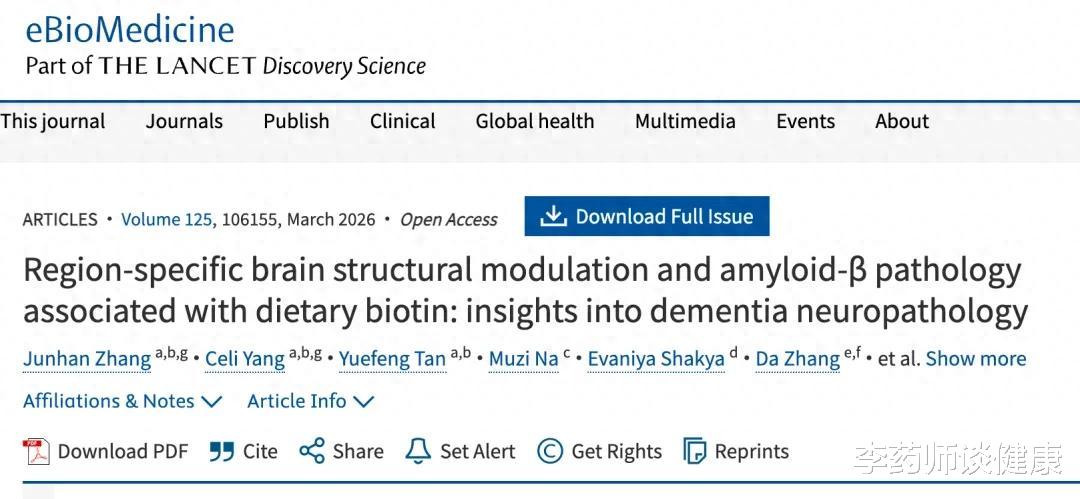 Zhang, Junhan et al. Region-specific brain structural modulation and amyloid-β pathology associated with dietary biotin: insights into dementia neuropathology, (2026), eBioMedicine, Volume 125, 106155.