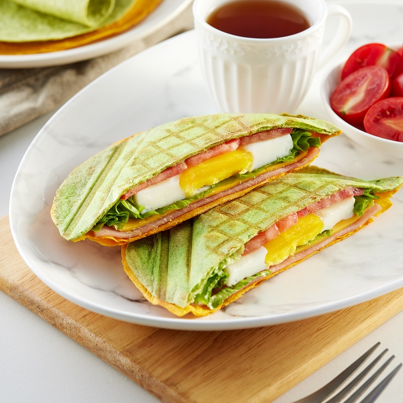 健康轻食选择:菠菜味面饼采用天然蔬菜色素,富含营养,搭配各种蛋白质和蔬菜,成为轻食餐厅的热门选择。