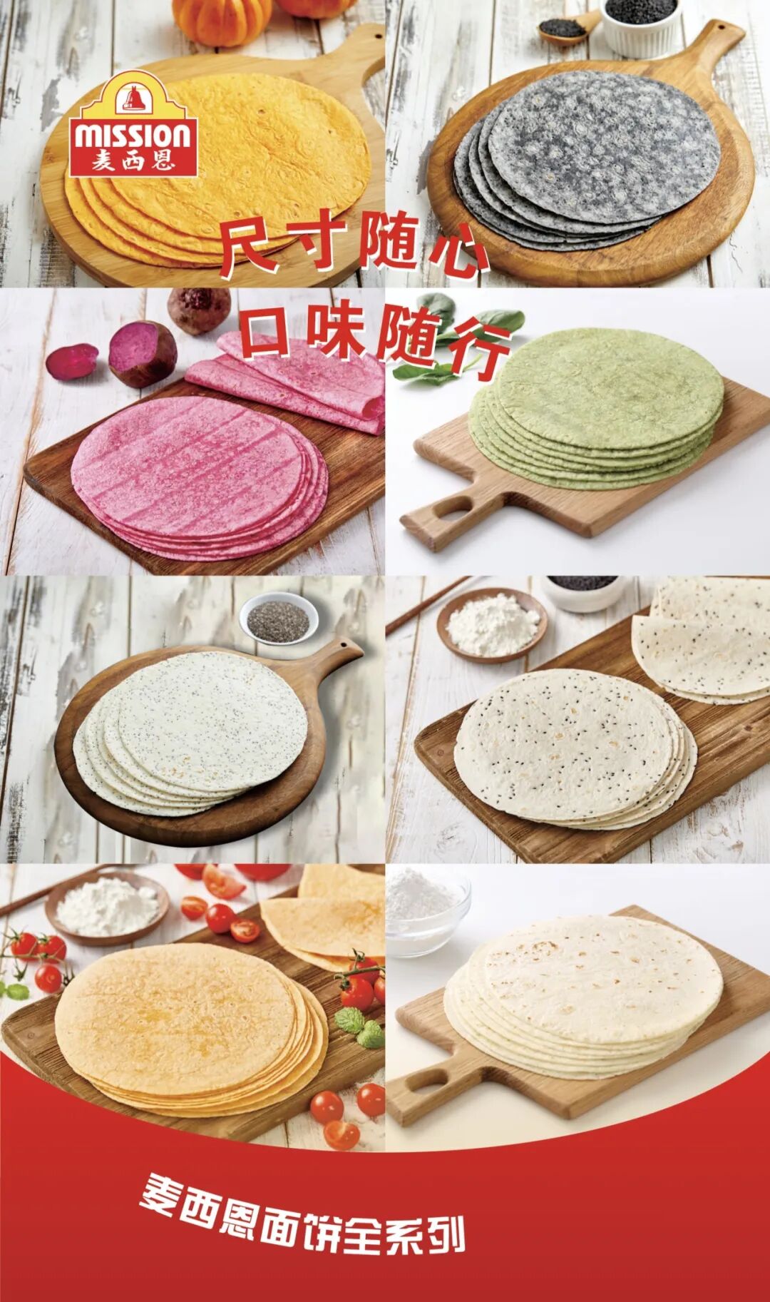 饼可以卷万物,这不仅仅是一句口号,而是体现了其面饼产品的极致包容性。从5英寸到12英寸,多规格产品可完美适配传统中餐馅料和西式食材,为餐饮客户提供多元的创作空间。