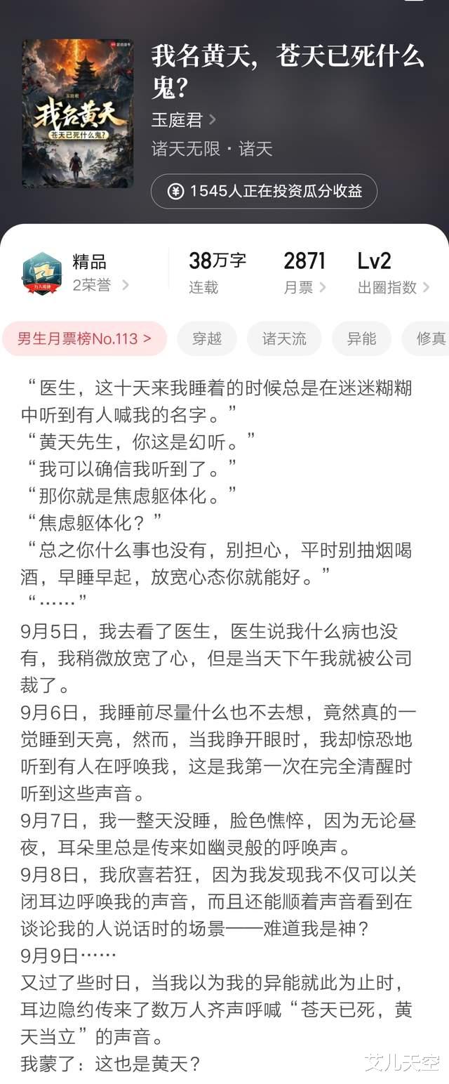 1、《我名黄天,苍天已死什么鬼?》38万字突破万订