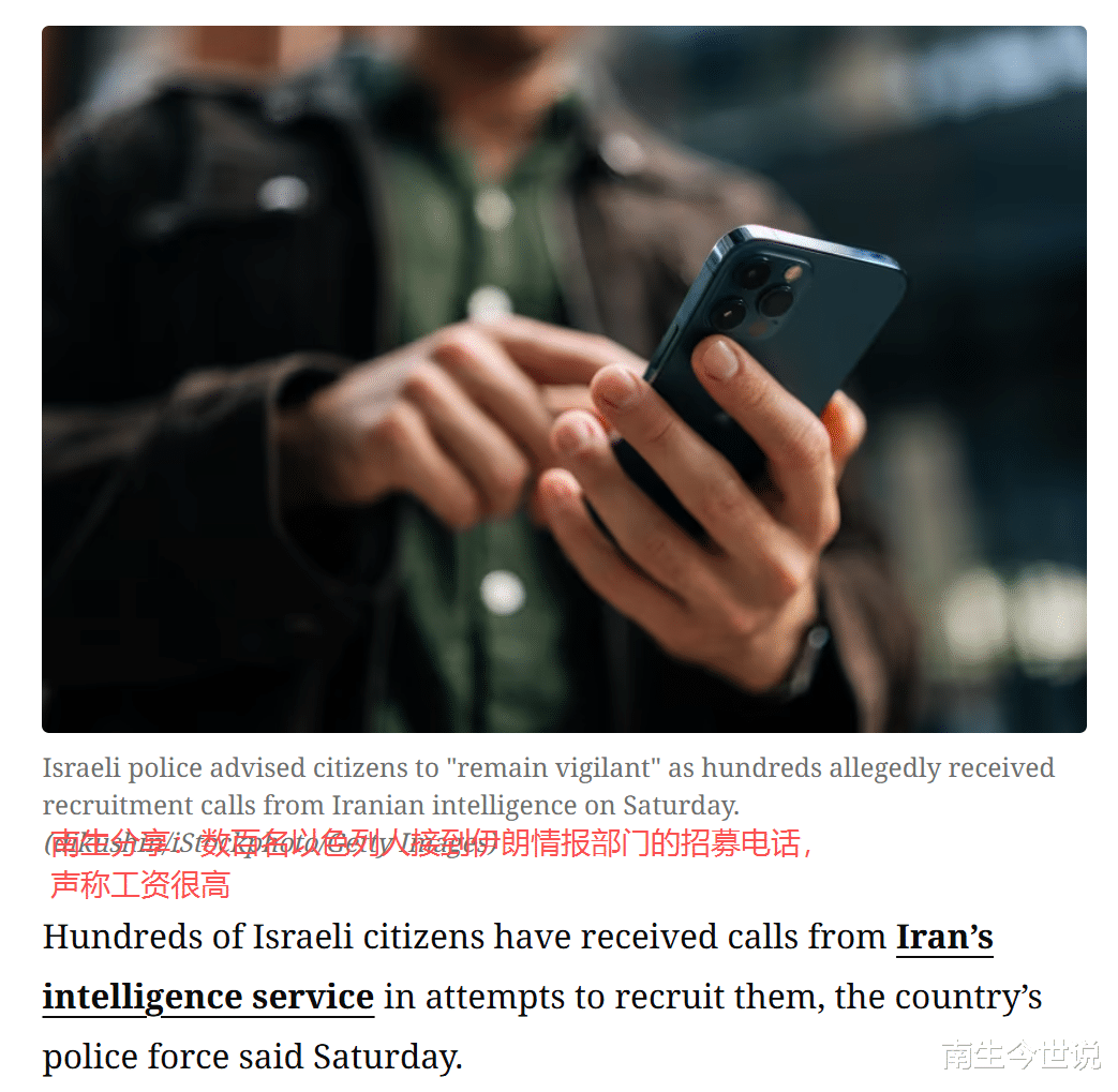 以色列警方去年就曾披露,有相当数量的公民因涉嫌为伊朗从事间谍活动而被捕,其中一些正是通过社交媒体被招募的。据称,伊朗在即时通讯软件上群发招募信息,其思路与今天的机器人电话如出一辙。
