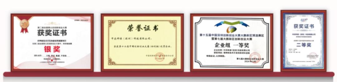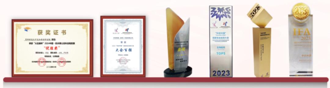 获2025年首届粤港澳大湾区创业大赛“食品科技与现代农业”赛道金奖、2023年第二届全国博士后创新创业大赛“现代农业与食品”组银奖、2023年第十五届中国深圳创新创业大赛“生物医药”组二等奖、2024年第七届大鹏新区创新创业大赛“企业组”一等奖、“科创中国”创新创业投资大会“生物医药”TOP5等各类创赛奖项和荣誉。