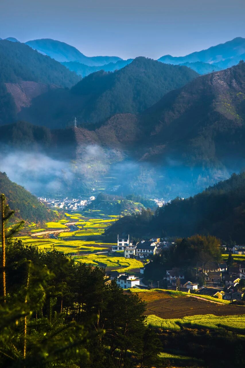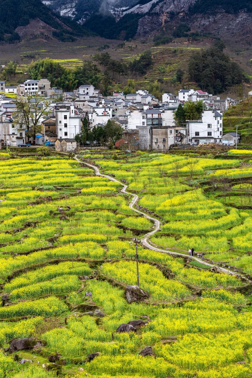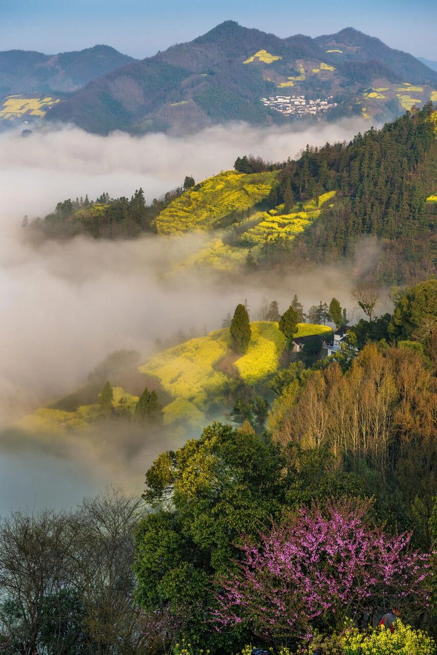 当春风拂过皖南的群山,万亩油菜花田便如金色的潮水般涌动,村落间桃红柳绿,点染着生机。而那烟雨缭绕中的粉墙黛瓦,更是将这份诗意具象化,随手一拍,便是一幅流动的中国画。