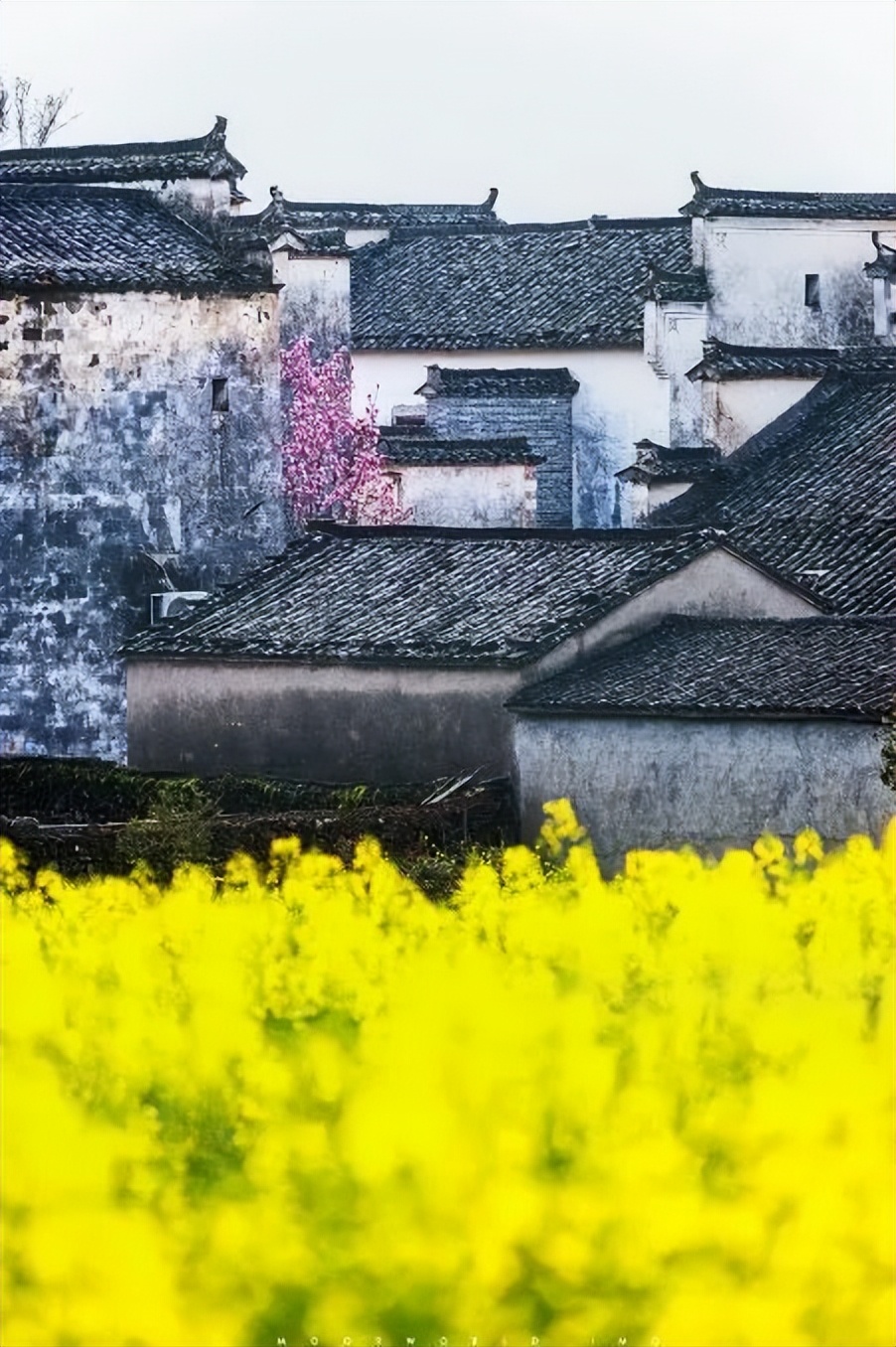 徽州的春天,是被大片金黄的油菜花点燃的。当花海盛开,一向古朴静谧的村落,也变得明丽而大气。它或许没有江浙水乡那般极致的温婉精致,但如丝的春雨与迷蒙的山雾,却为它平添了几分仙气,与田园山水画般的悠然意境。