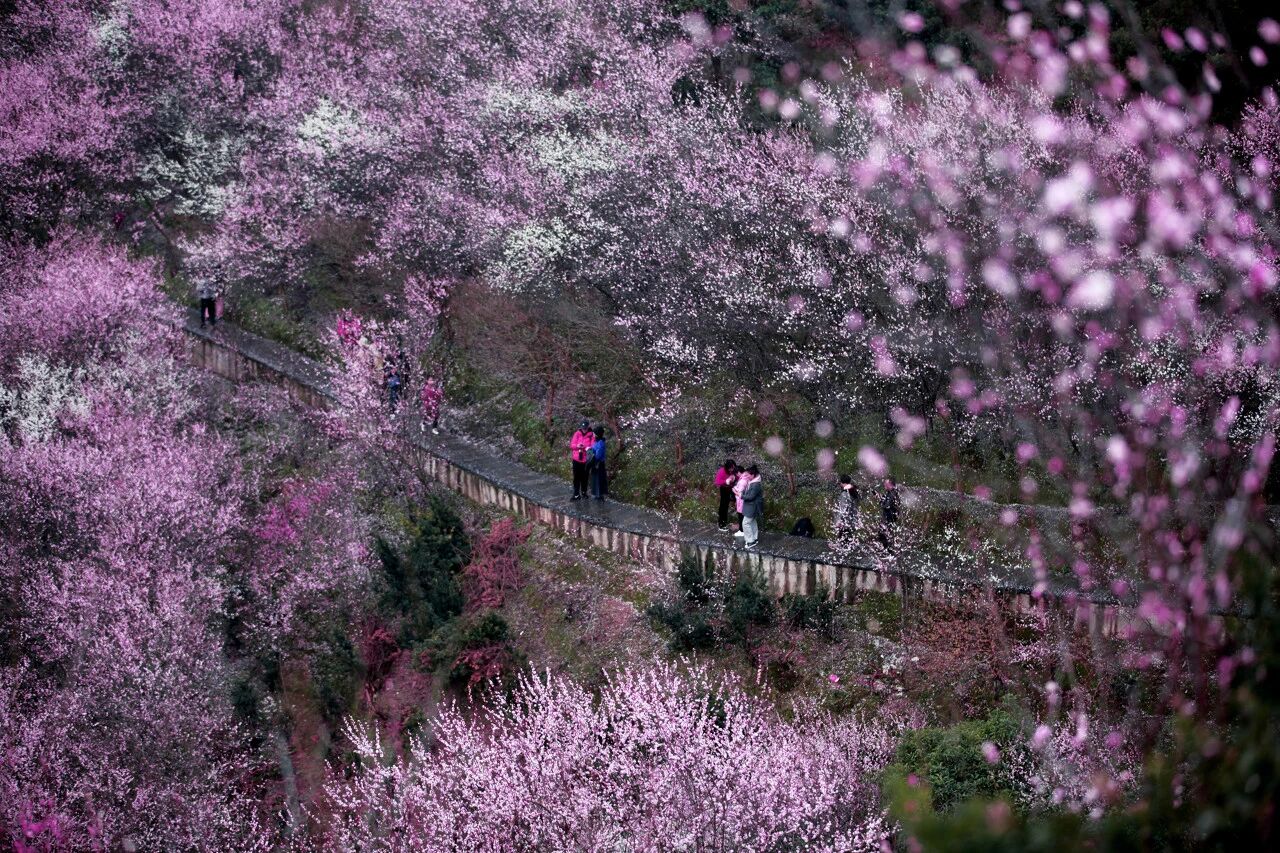 这里的人不打渔,只卖花。村子周围种满了梅花,冬末初春,沟谷中鲜花盛开,落英缤纷,灿若云霞,美到央视都曾为它打call。