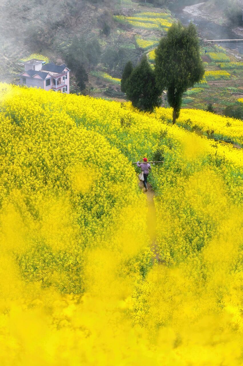 1. 泡在金色的花海里,邂逅中国最美春色如果要用一种色彩来形容徽州的春天,那一定是最明艳、最热烈的鹅黄。