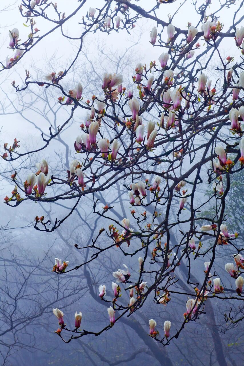 春天的黄山,黛青色的山体映着山间的玉兰、梅花与杜鹃,别有一番诗情画意。