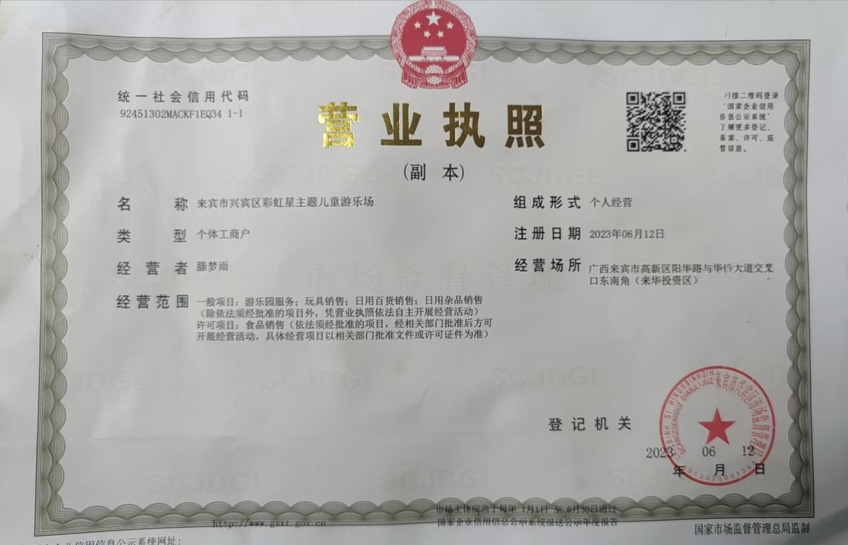 2024年1月,兴宾区住建局发给来宾市供电局《关于对来宾市兴宾区彩虹星主体儿童游乐场进行断电的函》,称临近春节假期,为阻止当事人违法经营游乐场带来安全隐患,请供电局对该游乐场进行断电。