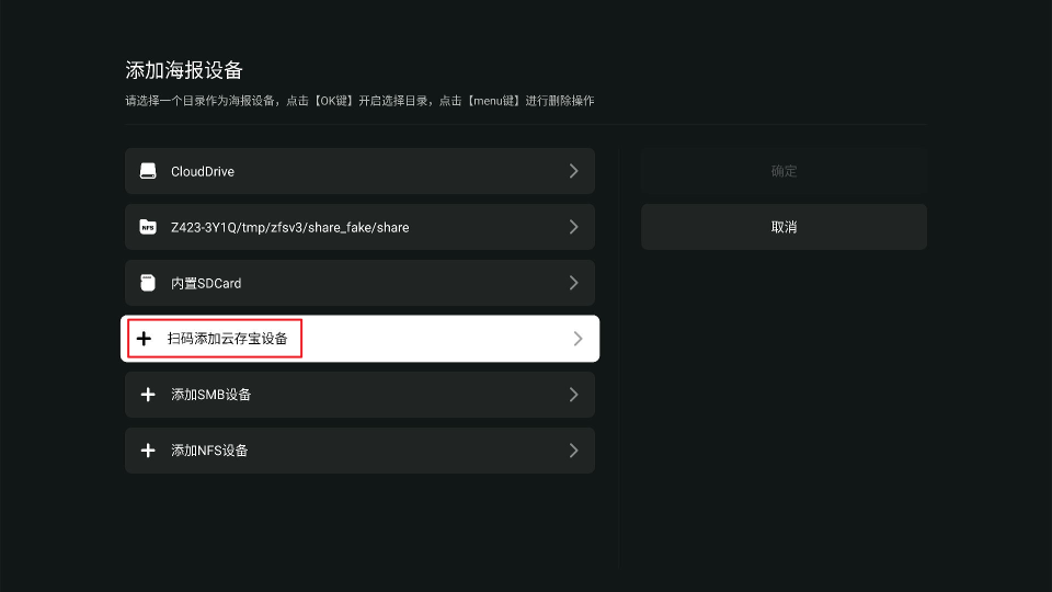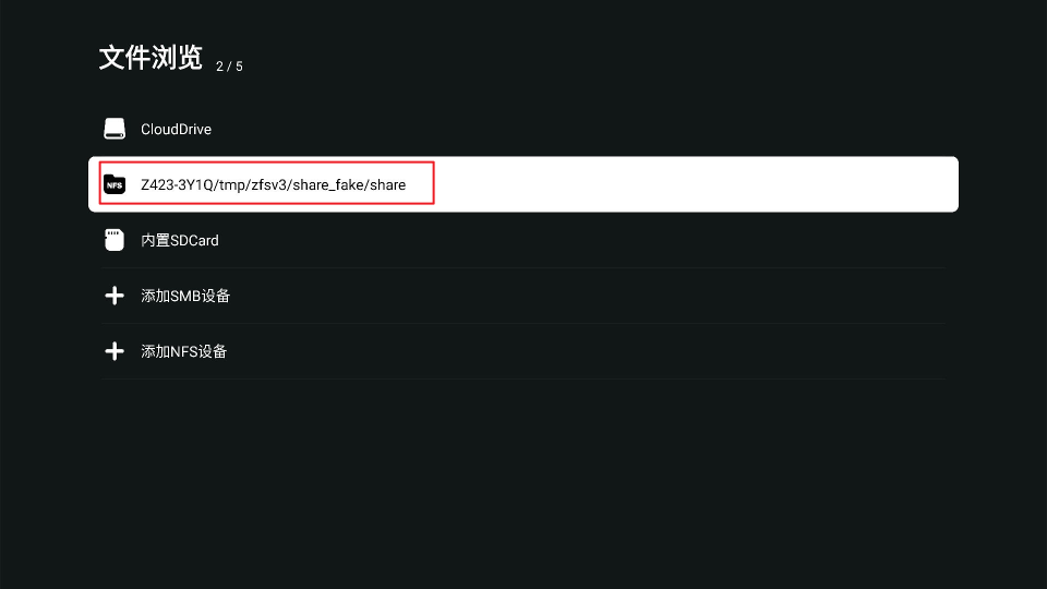 🔺找到之后直接添加即可,然后NAS就以NFS协议挂载到我们的播放器中了。