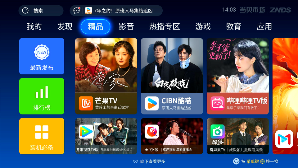 🔺值得一提的是,它还内置了芒果 TV ,拥有大量的影视资源可以直接观看,不过嘛,你懂得,该付的会员还是免不了的。但这并不是我们买它的重点,所以权当聊胜于无的功能吧!