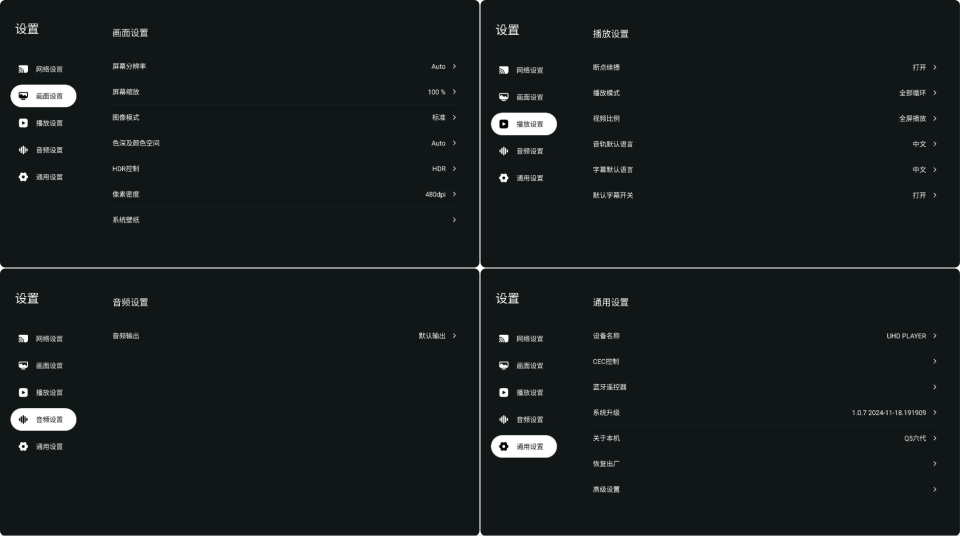 画质方面:支持HDR Vivid、HDR10+,HLG、HDR10。HDR Vivid是国内主导的,也是今后国内视频的发展趋势,HDR10/HDR10+基本上三星以及国产电视都是支持的,HLG则是很多广播电视节目普遍支持的。略有遗憾的是当前还不支持杜比视界,不排除后续支持的可能;