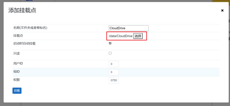🔺然后仅需在挂载点的位置选择“/date”,就能轻松将自己的网盘,或者指定网盘的某个文件夹挂载到本地,非常简单。