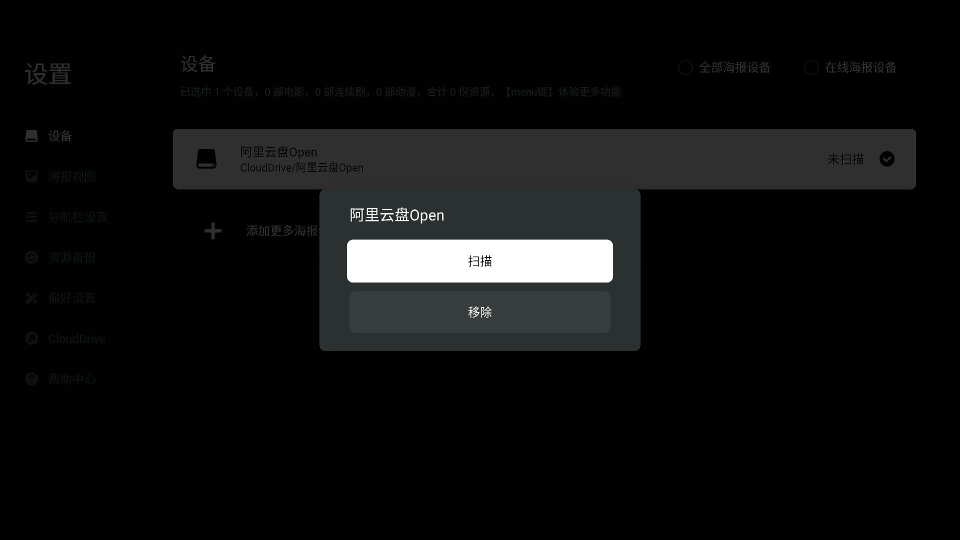 🔺海美迪的高清影院3.0也支持我们挂载在本地的CloudDrive网盘,直接在设置中添加,就能对网盘资源进行刮削和整理,生成漂亮的海报墙。