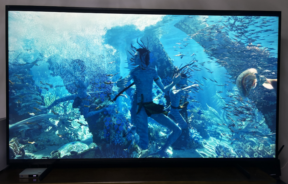 接下来咱们直接连接电视实机测试,电视为索尼X90L,因为光线以及拍摄设别的原因,再加上平台也会压缩,以下图片显示多多少少会有色彩偏差,小伙伴们也别太较真~