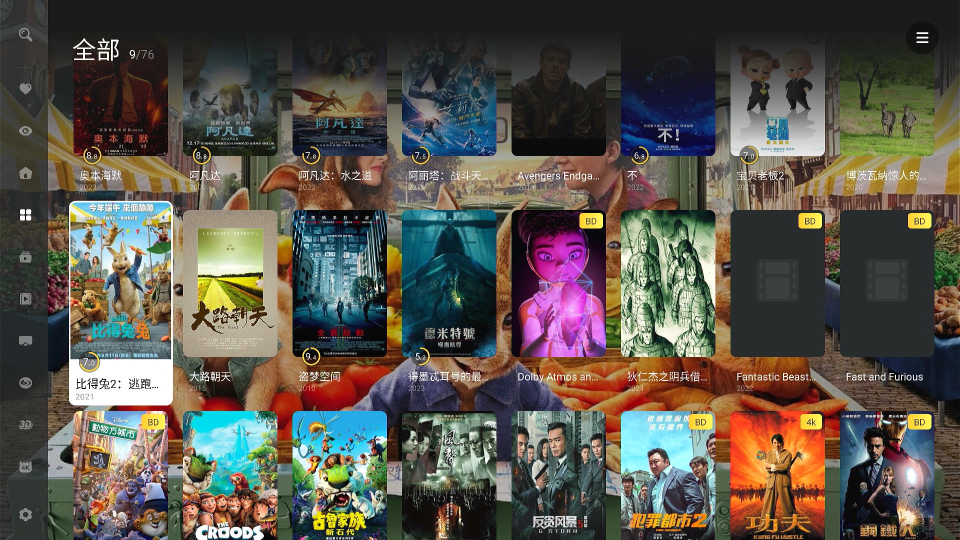 🔺回到首页就能看到刮削成功的海报墙,虽说有个别影视因为命名不规范没有刮削成功,我不过们稍后也可以通过手动刮削来搞定。我收集的资源很多都是原盘ISO和BDMV,这里也都全部识别出来了。