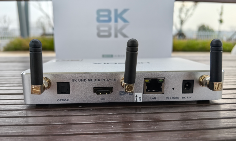 🔺海美迪Q5六代的包装比较简洁,正面的“8K”特别显眼,也强调了它强悍的性能表现。