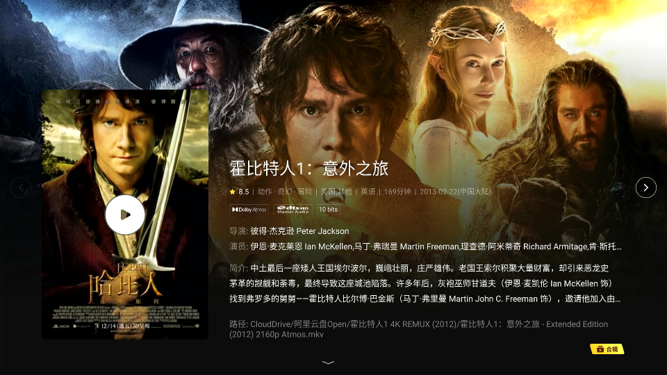 🔺海报墙的详细信息也是显示的非常齐全,包括基本的封面、同人画、电影简介、导演、演员以及评分等都有,而且还识别出来了杜比全景声。