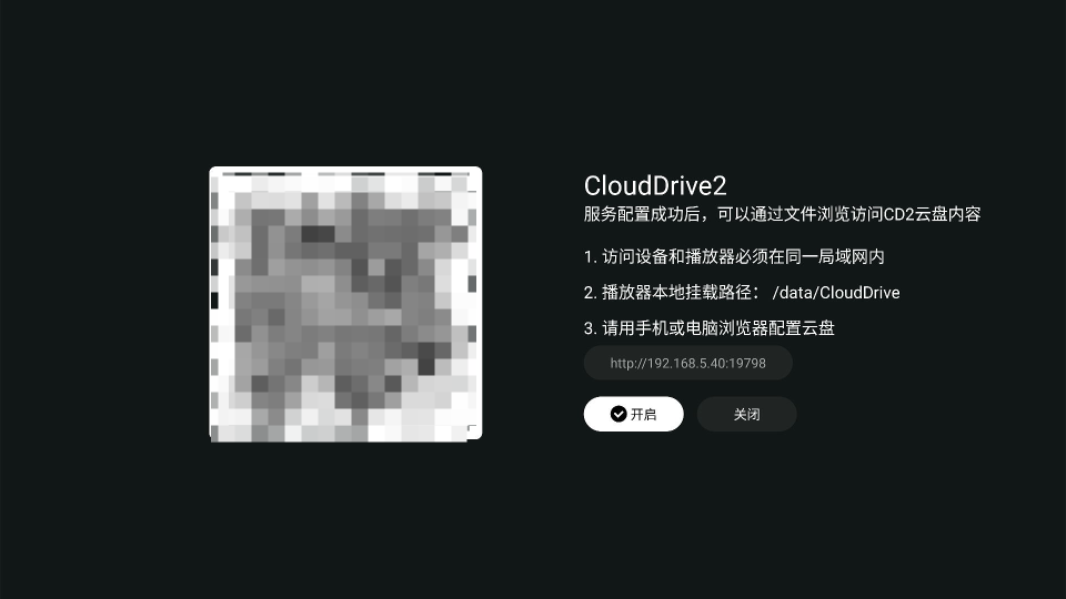 🔺我现在就是通过播放器给出的CloudDrive2地址【IP:端口号】,使用扫码就轻松绑定了我的阿里云盘。