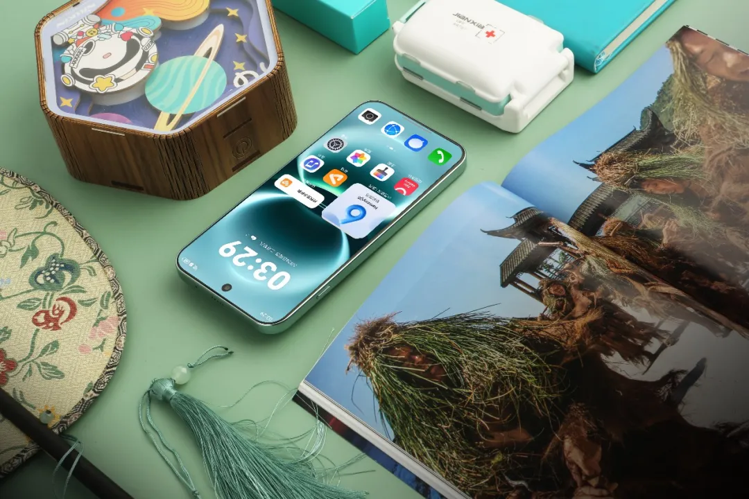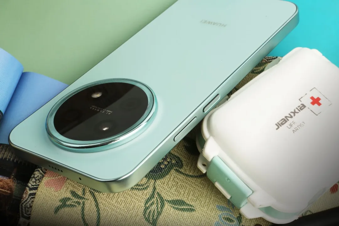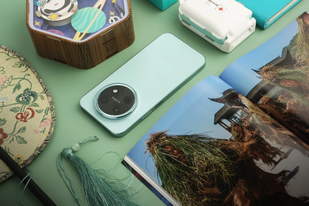 我们手上这款华为畅享90 Pro Max配色为飞天青,整块背板由秀色可餐的嫩绿色包裹。而且,每一个角度看去,都有无数“小星星”对着你闪闪发光,那遮掩不住的光亮灵动澄澈,恰似年轻群体散发的蓬勃活力。