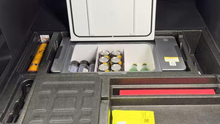 比较有看点的是,山海L7 PLUS除了中央扶手箱的“车载冰箱”以外,后备箱还提供了一个下沉式“智能冰柜”,里面放置了一个拥有20升储物容积的“冰柜”,内部分为3个分区,支持零下10摄氏度到10摄氏度的温度调节,造型规整不占用额外的储物空间。而这也并非其首创,在乐道L60上面,我们已经见识过同款设计。此外,新车基于全车座椅电动调节设计,支持32种座椅组合模式,其中包含4种躺平模式,可实现旅行小床、居家大床、驾享大床、驻车沙发等,二排靠背角度最大可以电动调节到131°,空间灵活性超过预期。