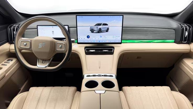 再来看看车内的表现,捷途山海L7 PLUS这一次采用了简约清爽的内饰设计,用料以大面积的软包材质为主,细节加以深灰色的木纹饰板包覆,与棕色中控台、座椅形成鲜明的色彩反差,提升了座舱的温馨氛围。而除此之外,前排座舱还运用了一个相当醒目的设计,那就是和宝马5系、7系相似的水晶氛围灯带,造型简约精致,在音乐律动的时候,观感如同流动的光带,对于习惯了传统座舱设计的家庭用户来说,吸睛程度拉满。