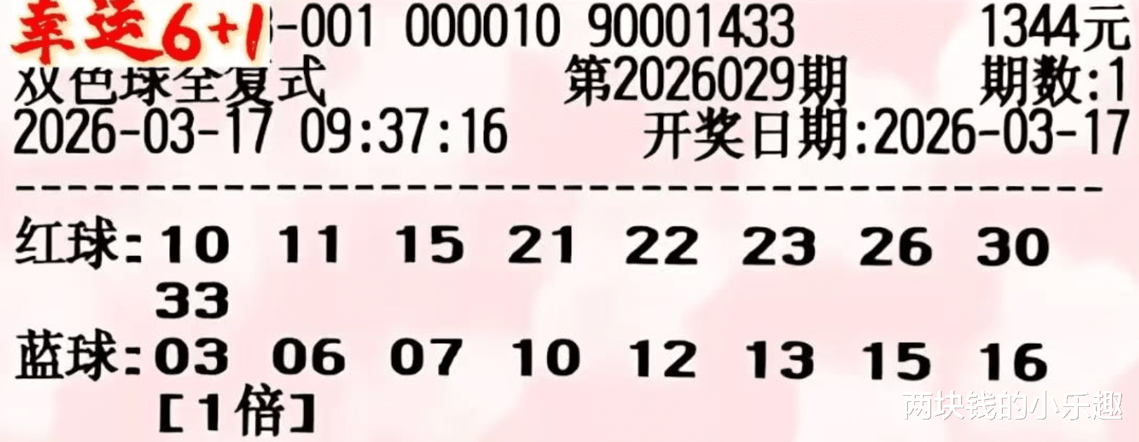大家好,下面给大家带来了福彩双色球第26029期的赏析,本期精彩内容是由湖南复式团队贡献,不过这只是打头阵的第一波,不过一些主流复式已经亮相,比如大家熟悉的1.6万顶流复式票,还有3696和1848等复式也已现身,下面请大家开始欣赏: