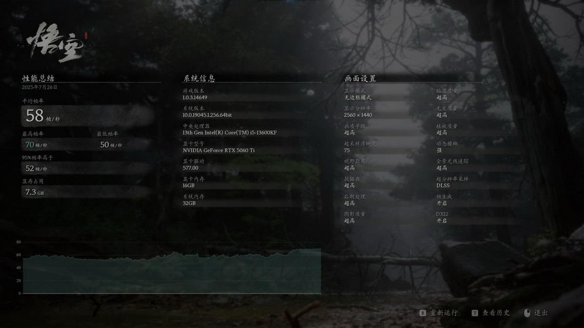 游戏方面,《黑神话:悟空》的benchmark测试,2K分辨率,设置如图,平均帧率58帧/秒,最高是70帧/秒,最低是50帧/秒。2K分辨率下,基本能流程运行,偶尔会有卡顿。