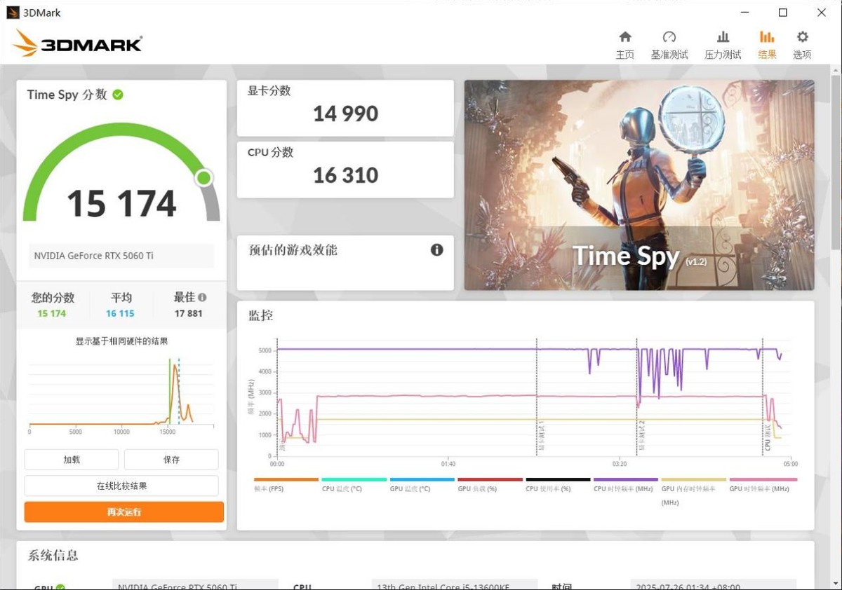 首先是测试平台,I5-13600KF+精粤B760M GAMING D5+阿斯加特 DDR5 6400 16G*2,显卡自然是盈通RTX5060Ti 16G游戏高手。接下来就是性能测试,顺带测试下稳定性。