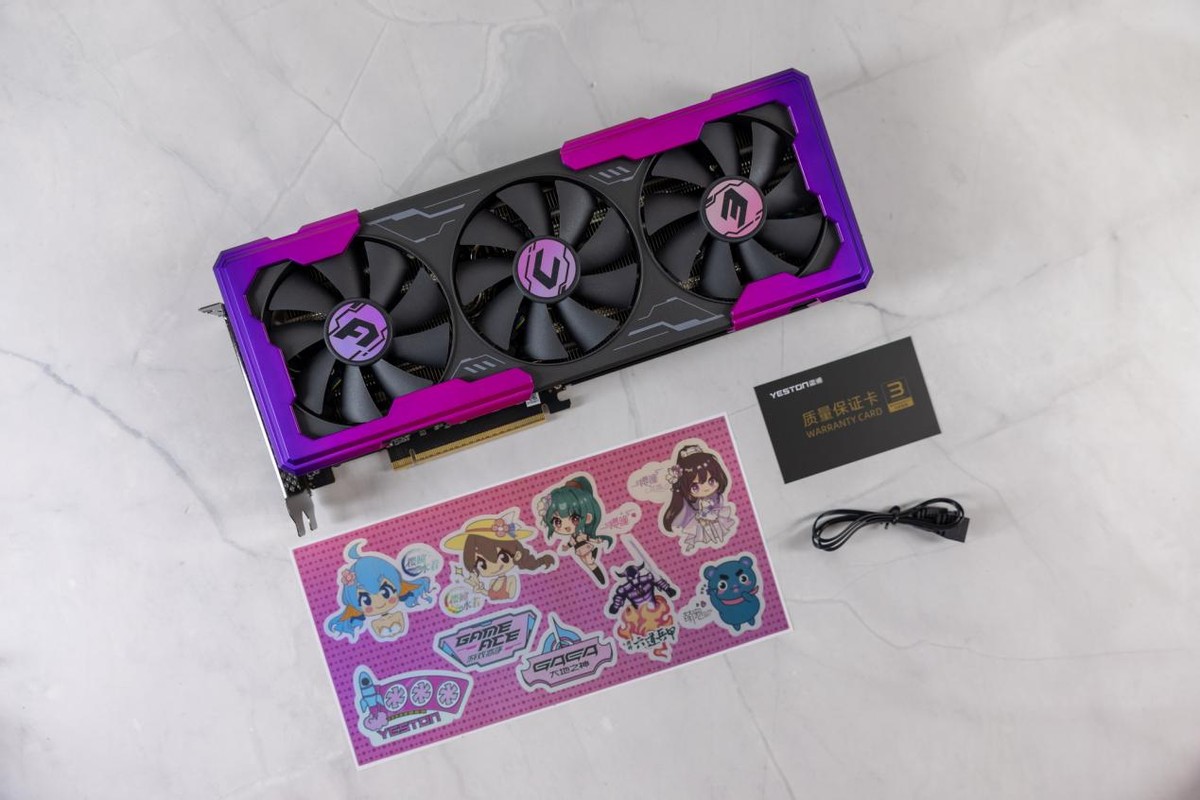 包装盒内含有盈通RTX5060Ti 16G游戏高手本体、一张贴纸,5V 3pin神光同步线和一张3年质保卡。