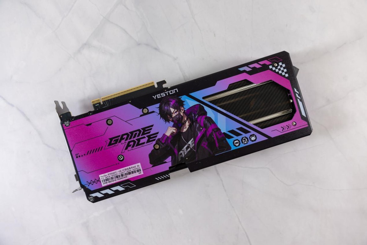 盈通RTX5060Ti 16G游戏高手配备有纯金属背面,上面印有高精度的二次元动漫人物,右侧还做了镂空设计,可以让散热器更高效的散热