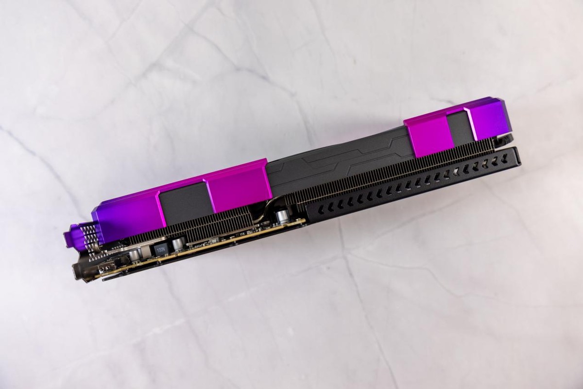 从显卡底部也可以看到部分散热主体和周边的情况。