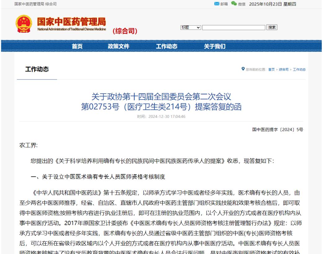 其实不然,2025年国家为有真本事的民间中医开辟了正规通道——传统医学确有专长。这条路线专为无科班背景、无法走师承,但有丰富临床经验、掌握特色诊疗技术的人设计,让他们通过考核拿行医资格,光明正大地服务患者。