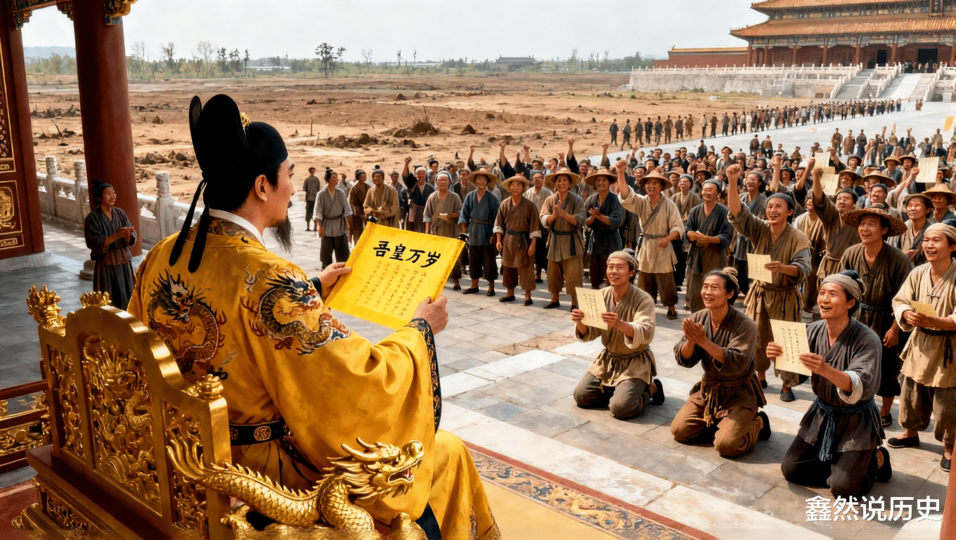 所以朕刚登基就下了死命令:把那些没人要的荒地、无主的田地,全分给农民种,而且头三年不收税,让大家好好喘口气。河南有个叫老张的农户,就是当年分到十亩地的幸运儿。
