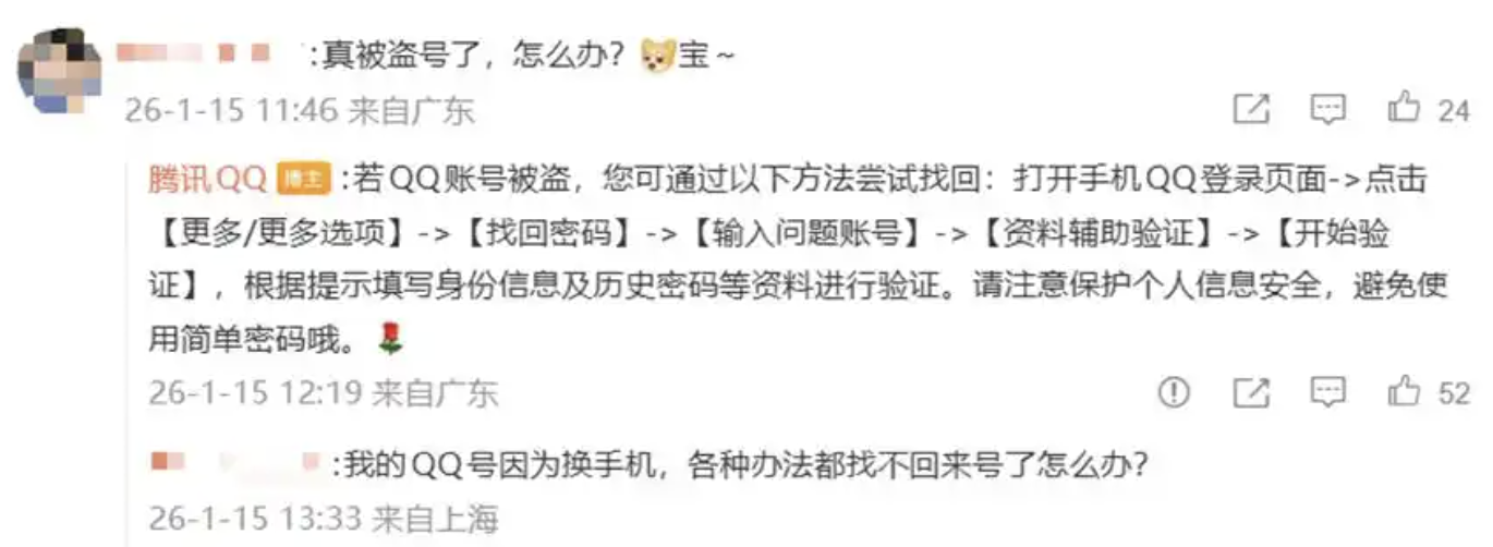 QQ官方这波高情商回应,堪称“互联网公关范本”。没有生硬辟谣,而是顺着网友的玩笑语气互动,既化解了潜在的争议,又借助沈腾的热度为自己圈粉。更贴心的是,官方还在评论区补充了账号被盗后的找回方法,提醒网友“若QQ账号被盗,可通过登录页面找回密码功能,填写身份信息及历史密码验证找回,注意保护个人信息安全”。一本正经地科普安全知识,却穿插在搞笑互动中,严肃又可爱的反差感,让网友们纷纷点赞“鹅厂这波回应,既懂玩梗又负责任”。
