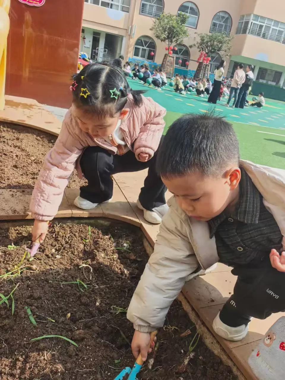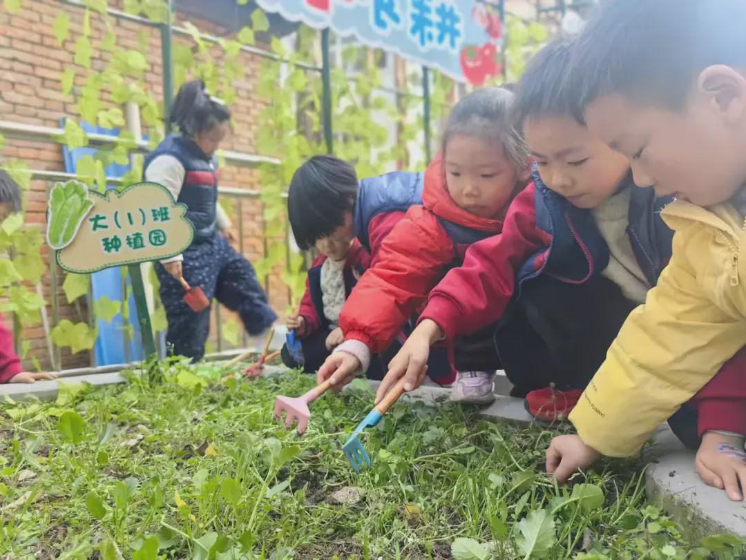 种植区里,孩子们蹲在泥土旁,认真学着挖坑、放苗、培土、浇水,每一个动作都充满认真与期待,这一方小小的种植天地,成为孩子们探索自然的乐园,在亲手实践的过程中,孩子们读懂了“一分耕耘,一分收获”的意义,在协作种植中,感受着乐群的美好。