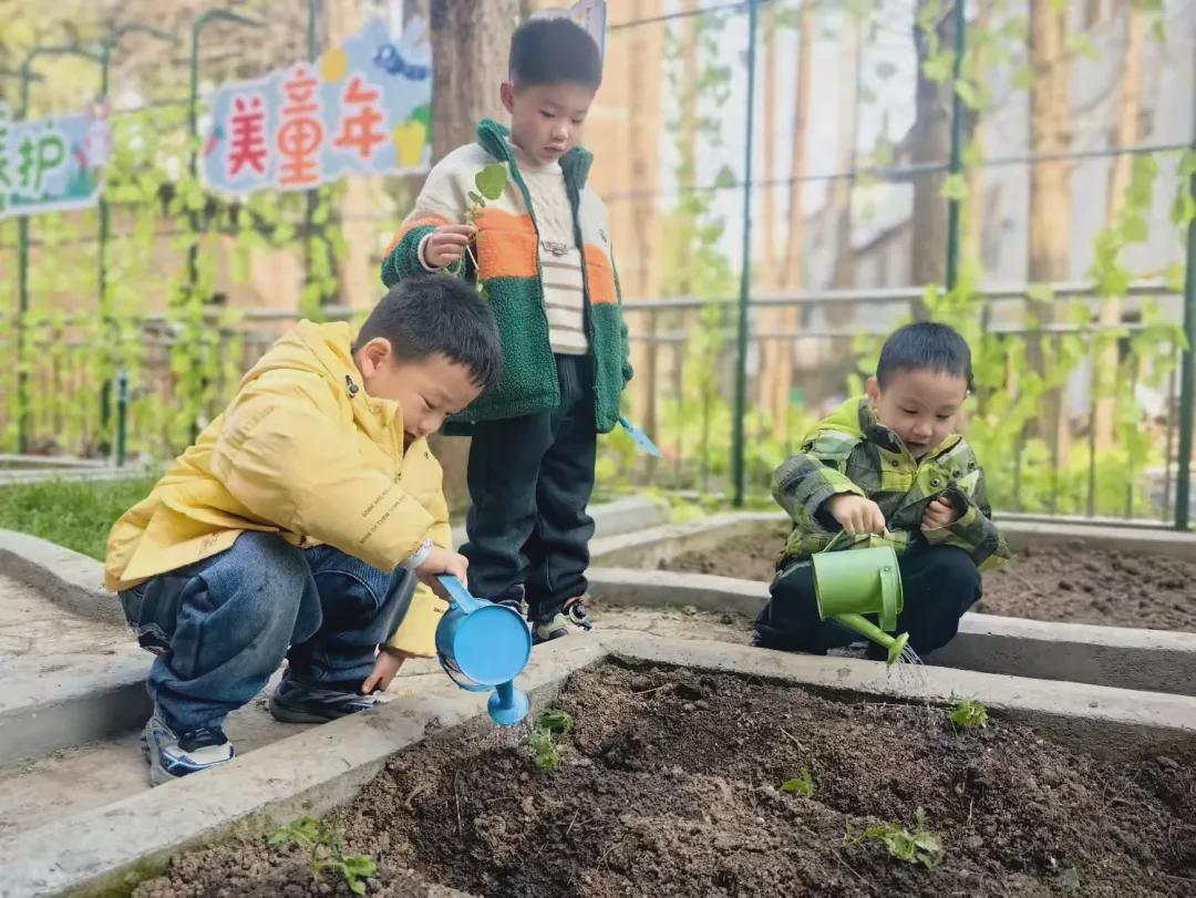 园中的葵宝小农场、班级观察角,是孩子们与自然对话的第一课堂。小小的身影穿梭其间,或轻捧水壶浇灌新芽,或俯身松土照料草木。