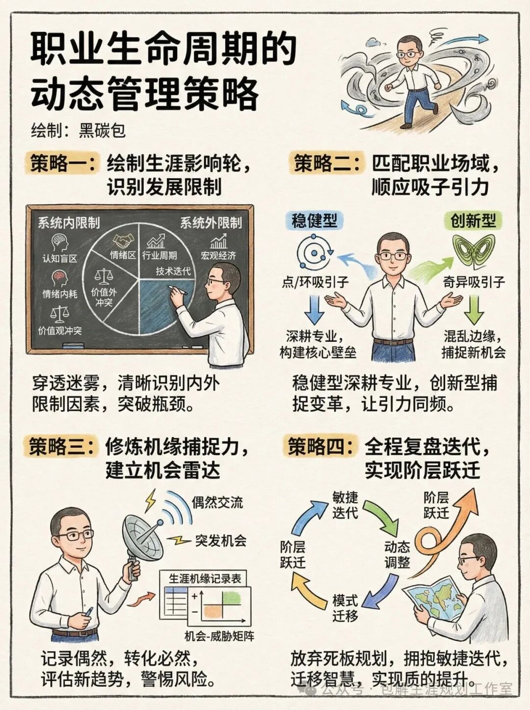 在职场这个混沌系统中,想要实现职业生命周期的动态管理,光找到吸引子还不够,还需要掌握这4套进阶策略,在变化中找准节奏、主动调适。