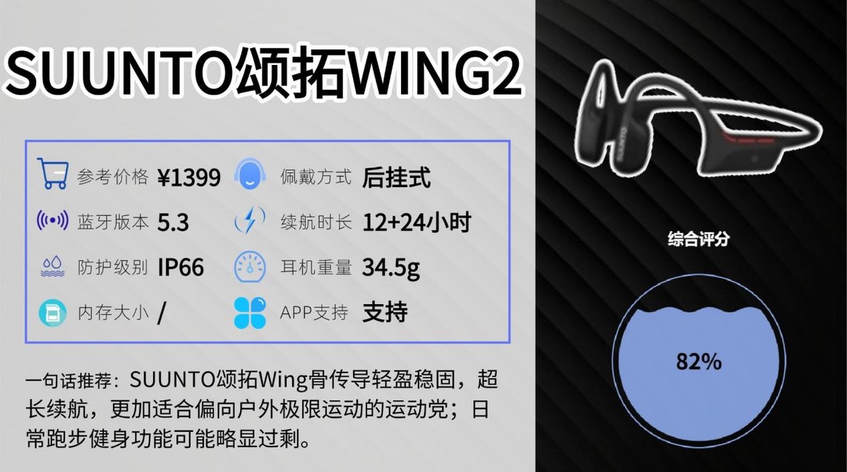 综合来看,WING2兼具清晰音质、稳固舒适和高适配度,非常适合户外极限运动或长时间训练,是一款专业级运动骨传导耳机。