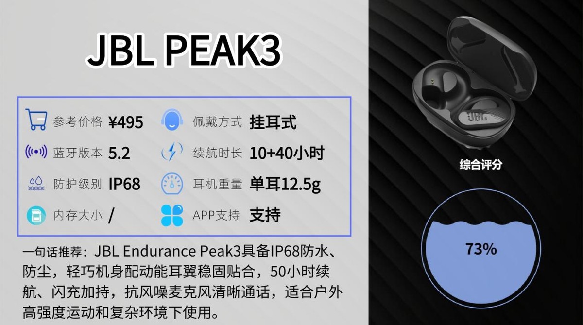 JBL在耳机市场以专业运动耳机和出色音质闻名,积累了丰富的运动耳机研发经验。Peak3在JBL中定位为硬核耐用、适合极限运动的旗舰级运动耳机。